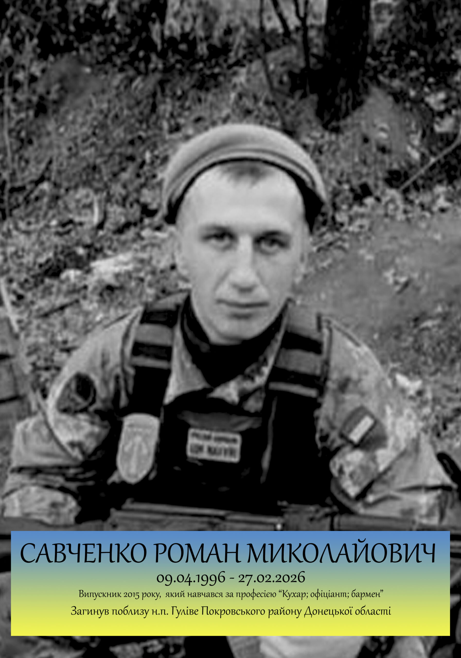 Випускник 2011 року, який навчався за професією "Офіціант; бармен". Загинув на території Запорізької області